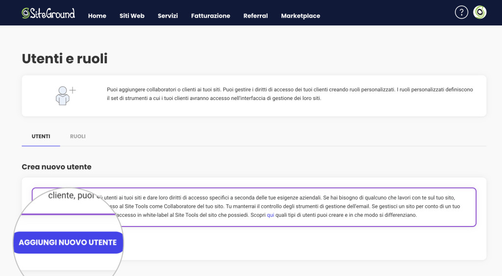 Creare un accesso collaboratore per Siteground